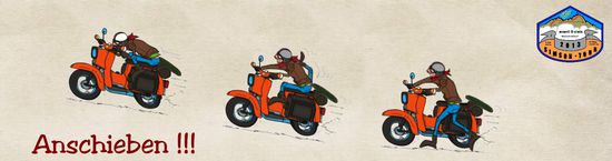 Also der Klassiker mit artistischer Einlage... Anschieben, Rennen und irgendwann kurz vorm Stolpern aufspringen. Dann in maximalen Schlangenlinien fahren um die Drehzahl in das noch halbwegs akzeptable Leistungsband zu bringen.