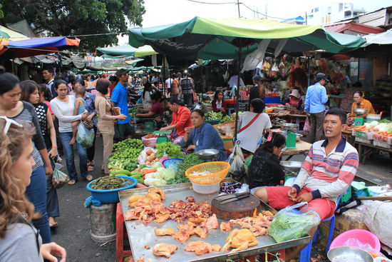 Nach unserer Ankunft in Phnom Penh ging es mal zu Fuss auf Entdeckungstour. Der Koenigspalast, der Fluss und die Flaniermeile mit Nachtmarkt sind alles innerhalb 5-10 Minuten zu Fuss zu erreichen....