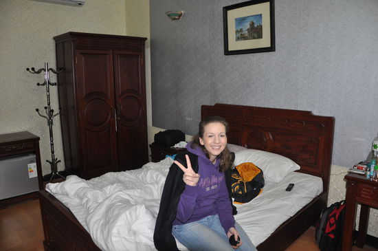 Ziemlich schnell fanden wir einen Taxifahrer der uns nach Hanoi in unser Hotel bringe sollte.. Leider wurden wir natürlich vor dem falschen Hotel abgesetzt...Zu dem Zeitpunkt wussten wir das jedoch noch nicht.. natürlich wurden wir herzlich begrüßt, alle "Formalitäten" erledigt, dann wurde uns mitgeteilt, das das Hotel einen Wasserschaden hat, und wir umgelagert werden müssen... Also auf auf die nächste Straßenseite.. Auch hier war man schon fleißig dabei uns Ausflüge etc. verkaufen zu wollen.. Allerdings hatte wir nach einer Anreise von über 28 Stunden nicht mehr wirklich das Ohr dafür. Als es um die Bezahlung ging, teilte ich dem netten Herrn Hotelchef mit, das wir bereits über das Internet bezahlt haben und ich vor Ort keine weitere Bezahlung vornehmen werde.. tja und siehe da, nach gerade mal 2 Stunden werden wir doch netterweise darauf hingewiesen, dass wir im falschen Hotel sind... ( Es ist ja nicht so, das wir unsere Reservierungsbestätigung schon fünf mal gezeigt hätten.... ) angeblich ist unser eigentliche Hotel nur eine Straße weiter und wir könnten das gemütlich zu Fuß laufen... Nun gut, bepackt mit einer Straßenkarte von Hanoi ging es los... Kann es sein, das hier jede, aber auch wirklich jede Straße gleich heißt ??? Aus mal eben kurz ums Eck wurde dann ein Fußmarsch von ca. 1,5 Stunden.. Als wir endlich in unserem Hotel ankamen war ich bereits ein Eisklotz aber trotzdem määächtig stolz auf uns, das wir unser Hotel ALLEINE gefunden haben.. ( Hätten wir nämlich nachgefragt, hätten wir gewusst, das es tatsächlich nur eine Straße weiter gewesen währe.. genau genommen 2 Minuten zu Fuß grrrrrr....) Unser Hotelzimmer war wie so typisch für hier fensterlos, was eine leicht bunkermäßige Stimmung aufkommen lies... Nur unser Bad hatte ein Fenster.. wie schön.... vorallem weil es ein KAPUTTES Fenster war !! Also herrschten nicht nur draußen null Grad, sondern auch gefühlte -10 Grad in unserem Hotelzimmer, denn wie sollte es auch anders sein, die Türe zum Bad leider ebenfalls quasi nicht vorhanden war...