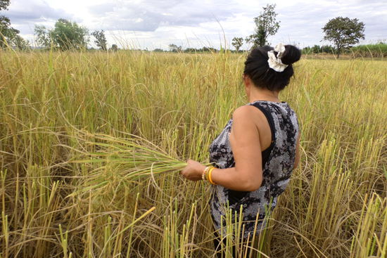 Nach der Trauerfeier machten wir auf der Heimfahrt noch einen Zwischenstopp am Reisfeld von Lat. Wir haben auch mal versucht, mit einer Sichel etwas Reis zu ernten, die Gefahr, mit 9 Fingern nach Hause zu fahren, war aber doch zu groß.