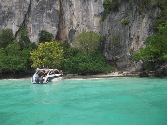 Wir haben deshalb eine Tour mit dem Speedboot gebucht zu der Insel, an der der Film "The Beach" gedreht wurde und nach Koh Phi Phi. Zwischendurch gabs mehrere Tauschstopps.