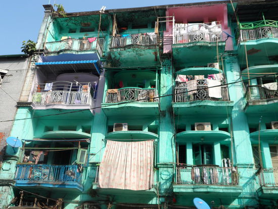 Wir schlendern durch den Park mit dem Obelisken in der Mitte, wo sich hunderte von Burmesen entspannen und das kleine grüne Fleckchen mitten in der Stadt zur Mittagspause nutzen. Wir kommen auf unserem Rundgang an zahlreichen Kolonialgebäuden vorbei, natürlich die meisten nicht renoviert, aber dieser morbide Charme macht den eigentlichen Reiz aus. Wir kommen am legendären Strand Hotel vorbei, das uns aber nur mäßig beeindruckt und bummeln dann Richtung Chinatown. Hier wird es ganz schön wuselig und aufgrund all der Gerüche, bekommen wir so langsam Hunger. Es ist mal wieder Zeit für ein leckeres Buffet und wir schlagen uns den Bauch mal wieder mit allerlei Spezialitäten voll, von denen wir nur sehr wenige zuordnen können.