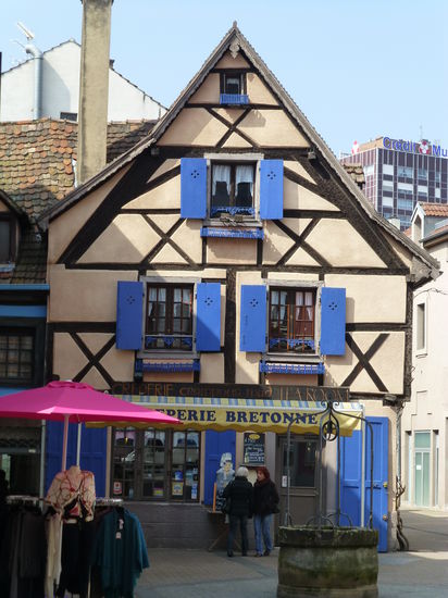Nach dem Bummel über den Markt zog es uns auf etwas komplizierten Pfaden in die Altstadt von Mulhouse. Da wir zunächst die falsche Richtung eingeschlagen hatten (wohl dem, der einen Stadtplan hat), fanden wir dann zu Fuß doch noch ins Zentrum. Zwar nicht vergleichbar mit den Bilderbuch-Idyllen in Colmar oder Straßburg, aber auch sehr nett und dabei überschaubar.