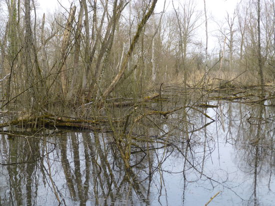 Nach einer Einkehr bei Kaffee und Kuchen (nach einer elsässischen Schlachtplatte war uns zur Mittagszeit noch nicht zumute) machten wir uns auf den Weg in Richtung Süden und in Richtung Schweiz. Bei St. Louis liegt die "Petite Camargue Alsacienne" mitten in den Rheinauen. Ein Naturschutzgebiet, das wir auf einem rund 2stündigen Rundgang genauer erkundeten. Sehr schön und halbwegs mild, da entlang windgeschützter Wege, war dieser Spaziergang ein wahrer Genuss. Immer wieder eröffneten sich auf eigens eingerichteten Aussichtsplattformen interessante Ausblicke auf Flora und Fauna der Rheinauen.