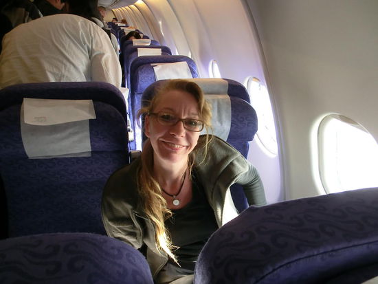 Dafür ist das Flugzeug halb leer, und wir können uns beide auf 2 Sitzen breit machen. Dennoch schlecht geschlafen, im Gegensatz zu Ines.