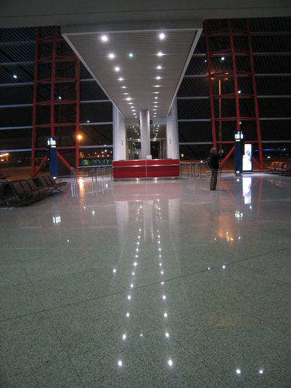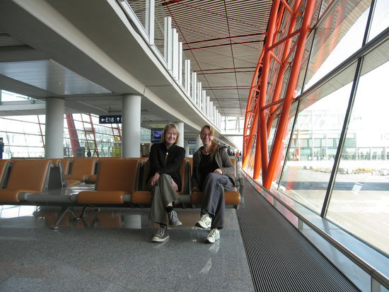 Die TransferLounge in Peking (angeblich Zimmer mit Dusche für 4 Stunden kostenlos nutzbar) entpuppt sich als verstaubte Ansammlung von Sesseln - natürlich keine Dusche. Egal! Man kann sich lang machen. Und Ines - schläft