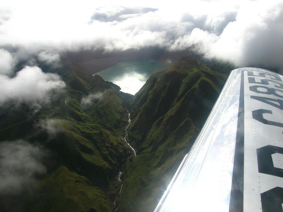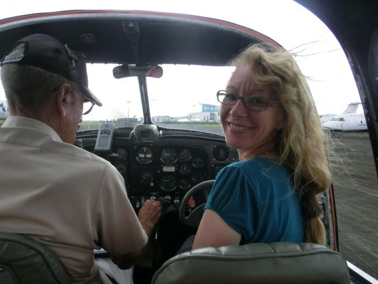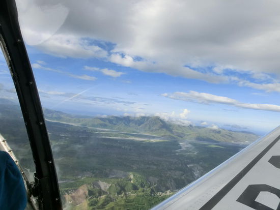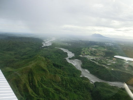 Jimmy hat uns in breitem Amerikanisch alles über die Landschaft, die Gebäude und den Pinatubo erklärt. Es war ein unvergleichlicher Flug und wir können Jimmy uneingeschränkt weiter empfehlen. Dieser Flug hat uns entschädigt für die 2 Tage in Angeles. Ein grandioses Erlebnis, zumal Ines als Copilotin auch einmal das Steuer übernehmen konnte.