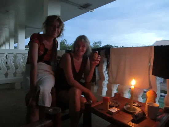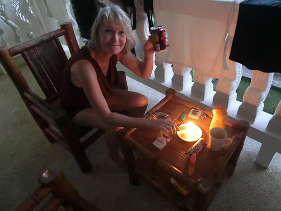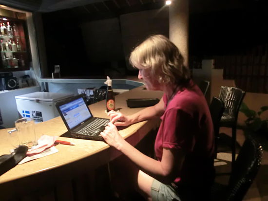 5. Abende an der Hotelbar mit lauter Musik (Pink Floyd) und anderen Stammgästen - nur hier ist IMMER Strom. Wir sitzen abends hier und posten unsere Berichte