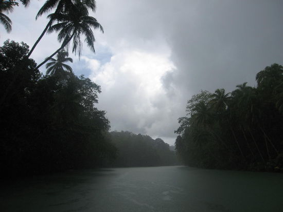 So ähnlich stellen wir uns eine Fahrt auf dem Amazonas vor! Die Vegetation ist dicht und tropisch und das Wetter wechselt blitzschnell von Sonne zu heftigem tropischen Regen. Die Luft dampft - und der Geruch ist unbeschreiblich gut.