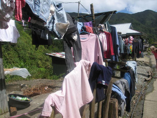 Waschtag - der erste sonnige Tag wird genutzt um Wäsche zu waschen und zum Troknen aufzuhängen. Überall hängt sie. Über die Straße gespannt, über die Dächer gebreitet, über Autos, über Masten und auf ellenlangen Leinen. Hier wird von Hand gewaschen. Selbstverständlich. Waschmaschine? Diesen Luxus gibt's hier nicht. Man sieht die Frauen an der Straße sitzen, in Schüsseln Wäsche und Schuhe waschend, Kinder am Wegrand ihre Haare waschend, Hunde, die ds Wasser trinken und alle winken und sind neugierig und gerne bereit zu einem Schwätzchen.