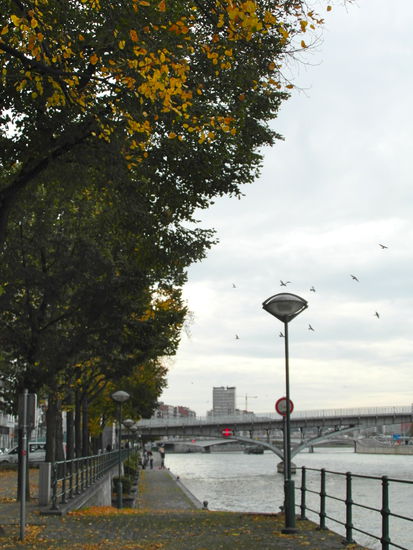 Nahe beim Musée d'Ansembourg überquerte ich die Maas und ging dann am Fluss entlang. Hätte ich die andere Maas-Seite mal schon früher entdeckt! Hier konnte man wirklich ganz ungestört und entspannt bis zur Neustadt am Fluss entlang gehen - keine Baustellen, keine Unterbrechungen, keine Umwege, keine riesigen Straßen... Herrlich! Und ich hatte mich immer auf der anderen Flussseite abgequält, statt einfach mal über die Brücken zu gehen... Naja, besser spät als nie, und so genoss ich den Weg entlang des Flusses, bis ich in die Outremeuse abbog.