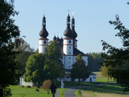 Nur 3 Kilometer von Waldsassen entfernt liegt auf dem 628 Meter hohen Glasberg die barocke Dreifaltigkeitskirche Kappl, das Wahrzeichen des Stiftslandes. Auch ihr statten wir einen Besuch ab und sind beeindruckt von dem imposanten Rundbau aus dem 17. Jahrhundert.
