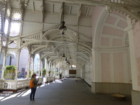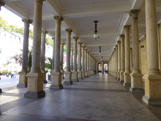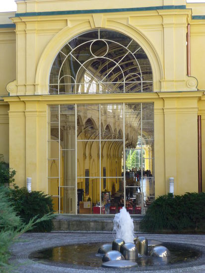 Wir drehen eine Runde durch das Kurviertel, wobei hier ein eisiger Ostwind weht. Der "Böhmische" eben. Am singenden Brunnen sehen wir Wasserspiele mit klassischer Musik untermalt, wir flanieren durch die neuen Kolonaden und bewundern die tollen Fassaden der Fin-de-Siècle-Prachtbauten.