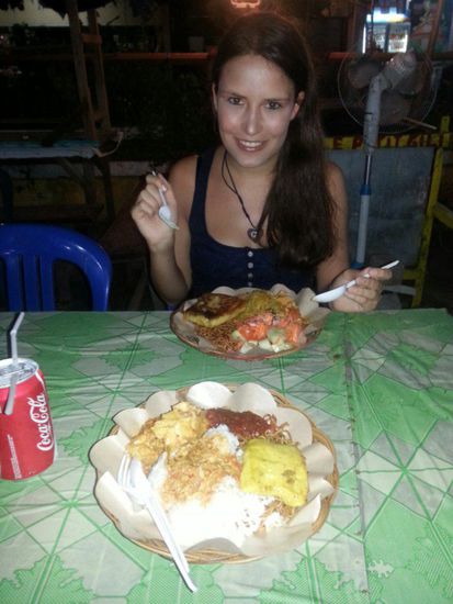 Wir verbrachten den Nachmittag am Strand bis uns der Hunger davon forttrieb. Auf dem Rückweg fanden wir den "Local Foodmarket" . Dort karrten jede Menge Einheimische ihre kleinen Wägen zusammen und preissten ihre Waren an. Dass wir dort heute Abend essen werden stand sofort fest. Dort angekommen erwartete uns eine ganz besondere Atmosphäre . Man suchte sich einfach aus der kleinen Auslage aus was man wollte und bekam das zu einem absolut tollen Preis auf eine Schale. So konnte man sehr viel der Einheimischen Küche testen ! Gegessen wurde auf Plastikstülen und kleinen Holztischen. Wie ich schon sagten, eine ganz besondere Atmosphäre eben Da es uns dort so gut geschmeckt und gefallen hat werden wir auch morgen dort wieder zu Abend essen.