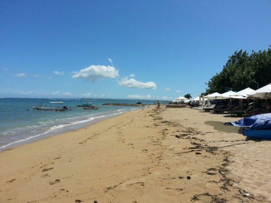 Nachdem ca. 3 stündigen Aufenthalt und dem Schwitzen wegen 2 Kilo leichter ging es zum Sanur Beach (1h Autofahrt). Hier hielten wir uns gute 2,5h aus und nutzten die Zeit zum relaxen und zum abkühlen im Meer. Das war auch echt nötig und hier kann man durchaus ein paar Stunden verbringen