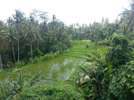Da wir noch genügend Zeit und Sprit hatten, entschieden wir uns einfach Blind drauflos zu fahren. Das war die wohl beste Idee des Tages. Bereits wenige Kilometer hinter Ubud war das, was wir uns von Bali vorstellten und aus viele Fotos aus dem Internet kannten. Eine Landschaft voller wundervollen Palmen, netten kleinen Häuschen am wegesrand und Reisfelder in einem Grün wie wir es noch nie zuvor gesehen haben. Die Natur zeigte sich hier von ihrer allerbesten Seite. Die Felder,die Gräßer , die Pflanzen und die Reisterrassen, alles blüht in einem Grün wie es wir bisher noch nicht kannten. Warum auf Bali die Hauptsaison an Weihnachten und in den Monaten Juli-September ist , ist uns absolut fraglich. Am Ende der Regenzeit ist es hier absolut traumhaft und bisher hatten wir noch keinen einzigen Tropfen Regen. Wir würden immer wieder zu diesem Termin reisen und auch jedem anderen empfehlen.