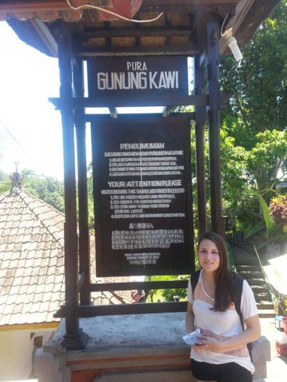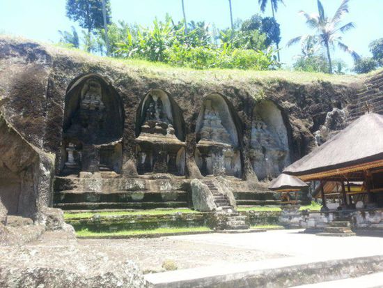 Nach diesem wunderbaren Erlebnis ging es 3km weiter südlich zum Gunung Kawi. Diese Denkmäler liegen am Fuße eines Flusstals inmitten wunderbarer saftig grüner Reisterassen. Der Gunung Kawi ist eines der ältesten und größten Monumente Balis. Er besteht aus 10 steinernen Denkmälern,aus aus der Felswand geschlagen wurden und dadurch wie Statuen wirken. Der Auf- bzw. Abstieg zu diesem Denkmal ist aber mehr als nur schweißtreibend und anstrengend, aber gut bei 33Grad und fast 100% Luftfeuchtigkeit ist das auch nicht weiter verwunderlich