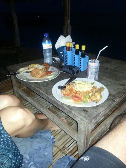 Am Abend begaben wir uns zu einem Warung direkt am Strand. In einer super Atmosphäre, nur 2 Meter vom Meer entfernt gab es für uns Fried Rice und Fried Noodle with Chicken. Leckeres Essen mit einem noch besseren Ausblick