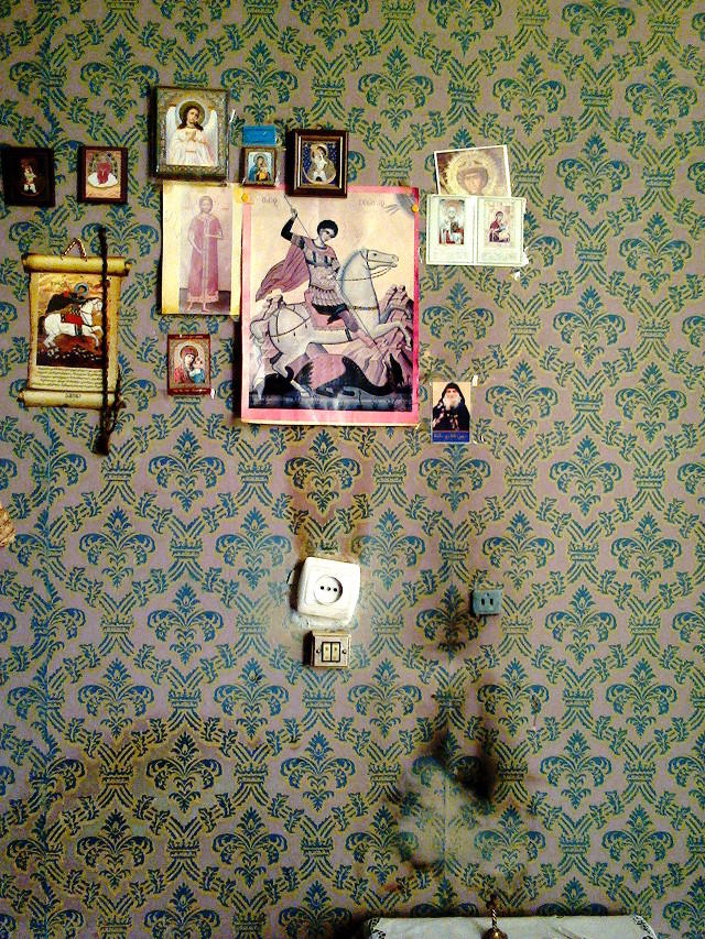 Dünne Opferkerzen, üblicherweise honiggelber Farbe, werden auch in Privathaushalten angezündet. Dort findet sich oft eine Wand mit Heiligenbildchen vor denen tägliche Verrichtungen stattfinden. Neben vielen Türrahmen findet man ein kleines Jesusbild.