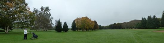 Es ist sehr naß, und vor allen Dingen, ist das Fairway durchsetzt von (durch Würmer o.ä.) ausgeworfene Erde, so dass Ulrike schon allein deswegen anfängt zu fluchen. Der Boden ist total weich und auch damit kommt sie nicht klar.
