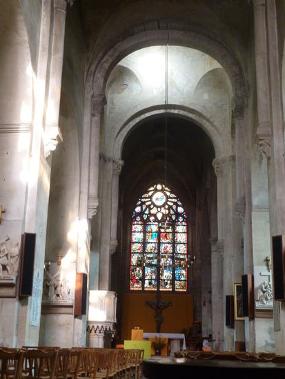 Wie in St. Vallerin hat auch die Kirche von St. Gengoux-le-National einen seitlichem Turm - das Innere gefällt uns aber gar nicht, da vieles nicht zueinander paßt.