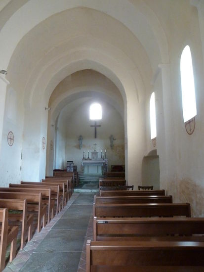 In Germagny ist die Kirche ebenfalls schlicht, lediglich mit Fresken im Chor und zwei Köpfen an der Außenwand.