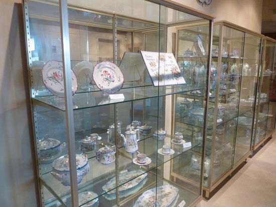 Auf der 1. Etage sind Fayencen aus Charolles ausgestellt. (Die angefahrene Fayencen Fabrik hat aber Mittagspause und scheint heute nur noch Vasen o.ä herzustellen.)
