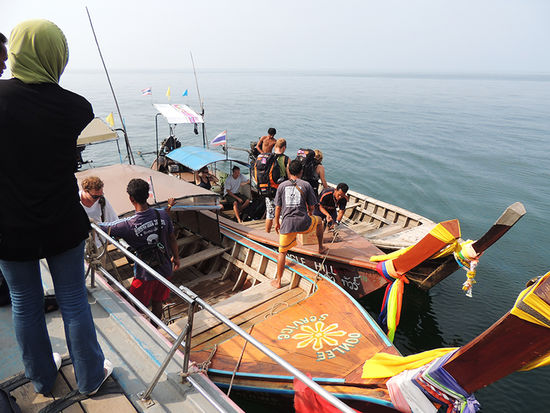 Die Insel besitzt keinen Bootsanleger, aber es gibt zwei Punkte, an denen die Fähre von knatternden Longtailbooten gejagt wird, bis sie schließlich auf offenem Meer anhält.