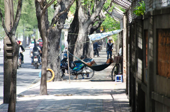 In Vietnam muss man nicht nur ständig auf den Verkehr achten, auch wenn man auf dem Gehsteig entlang geht sollte man stets Augen und Ohren offen halten ....