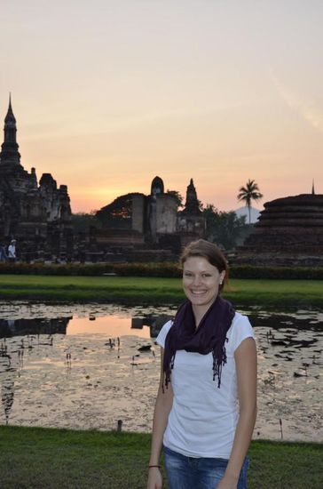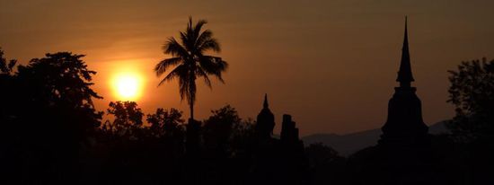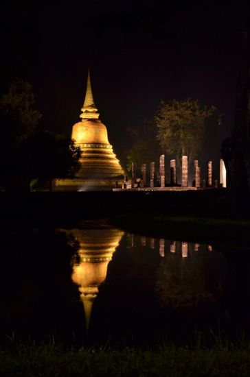 Nach einer guten Woche in Chiang Mai haben wir dann noch mal wieder Lust bekommen, was neues zu sehen und haben uns auf den Weg nach Sukhothai gemacht. Nach 6 Stunden Busfahrt sind wir in Neu-Sukhothai angekommen und wurden dort direkt beim Ausstieg aus dem Bus von einem Guesthouse-Besitzer angesprochen. Eigentlich wollten wir erstmal was essen und dann in Ruhe nach einer Unterkunft schauen, aber wir haben uns dann doch überreden lassen das Guesthouse wenigstens mal anzuschauen. Es war sauber und auch mit 250 Baht recht günstig, also haben wir es für eine Nacht genommen. Als wir dann Abends auf der Suche nach was zu Essen durch die Stadt gelaufen sind, waren wir auch sehr froh, dass wir das Happy-Guesthouse genommen haben. In Sukhothai gibt es, im Gegensatz zu Chiang Mai, kein so großes Guesthouse-Angebot. Stattdessen eine große Hauptverkehrsstraße, ein paar Seitenstraßen und ein paar Essensstände. Wir haben dort nichtmal ein Restaurant gefunden das geöffnet hatte, dafür aber einen kleinen "Nachtmarkt" mit ca. 10 Essensständen. Optisch war es dort nicht besonders ansprechend, direkt an der lärmenden Hauptstraße, aber das Essen war sehr lecker und mit 35 Baht für eine große Portion Fried Rice mit Pineapple auch sehr günstig. Geschmacklich können die kleinen Straßenstände locker mit den teuren Restaurants mithalten. Das Flussrestaurant in Chiang Mai war auch nicht besser, hat aber den 10-fachen Preis verlangt.