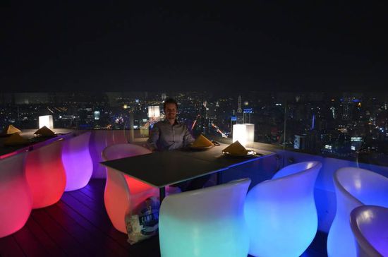 Das totale Kontrastprogramm haben wir dann am nächsten Tag erlebt. Nachdem wir im MBK, einem der großen Shoppingzentren der Stadt noch ein paar letzte Mitbringsel erstanden haben, sind wir abends zum Baiyoke Tower, dem höchsten Gebäude der Stadt gefahren. Dort haben wir in einer Freiluftbar im 81. Stock den letzten Abend unserer Reise genossen. Der Blick von hier oben war wirklich grandios