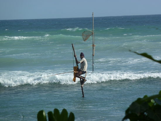 Gegen fünf treten wir den Heimweg an. Als ich die ersten Stelzenfischer entdecke, die ja ein beliebtes Motiv in Sri Lanka sind, stürze ich mit dem Fotoapparat aus dem Auto und übersehe dabei einen dicken Stein, der direkt vor mir liegt. Ich knalle mit meinem großen Zeh dermaßen hart gegen den Brocken, dass ich eine klaffende und blutende Wunde davontrage. Hinkend ergattere ich wenigstens noch ein paar schöne Fotos. Als es langsam dunkel wird, quälen wir uns durch den furchtbaren Abendverkehr, der im Gegensatz zur Mittagszeit stark zugenommen hat. Nico findet mal wieder die passenden Worte: "Willkommen in der Hölle, hier gibt es kein Erbarmen im Verkehr". Vor allem die Fahrräder, die uns auf unserer Seite unbeleuchtet entgegen kommen, fordern erhöhte Aufmerksamkeit. Wir sind froh, als wir unser Hotel erreichen.