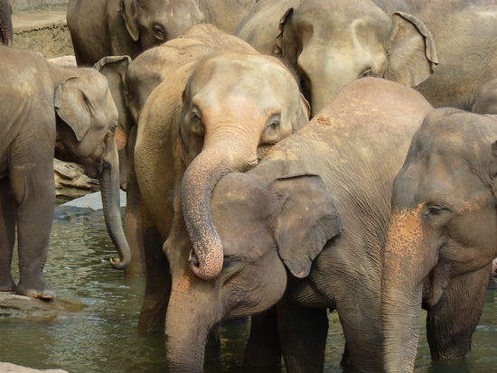 Wir verlassen Sigirya und decken uns in Dambulla mit kalten Getränken und zwei dicken Töpfen Eis ein. Den Rückweg wollen wir über Colombo nehmen, weil bis dorthin durchgehend eine Hauptstraße führt und weil wir einen Abstecher im Elefantenwaisenhaus machen wollen. Der horrende Eintrittspreis dort von 35 Euro ist für das, was man zu sehen bekommt maßlos übertrieben. Der Weg dorthin führt durch die übliche Verkaufsgasse, die man aus allen Ländern in unmittelbarer Nähe einer Touristenattraktion kennt, nur dass hier und da fette Elefantenfladen herumliegen und stinken. Die Elefanten baden im Fluss, machen aber einen etwas lustlosen Eindruck. Deshalb bleiben wir nicht lang und hoffen, dass das Eintrittsgeld wenigstens den Tieren zu Gute kommt und gehen zurück zum Parkplatz. Kaum sind wir dort, kommt ein Fettsack aus dem kleinen Restaurant nebenan angeschlurft und verlangt von uns Parkgebühren. Da das aber nirgends dran steht und ich auch glaube, dass er es einfach auf doof bei den Touristen probiert, knallt Thomas ihm einfach die Tür vor der Nase zu und wir fahren los.