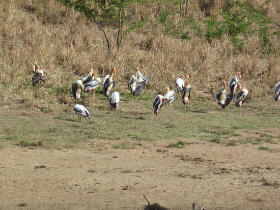 Für das Mittagessen ist es etwas zu früh, aber dennoch bringt man uns zu einer nahe gelegenen Safari Lodge, wo wir die einzigen Gäste sind. Beim Betreten des Gartens entdeckt Nico einen Schmetterling, der so groß ist, dass ich zuerst denke, er sei ein Vogel. Wir bekommen das Touristenstandardmenu vorgesetzt, dessen erster Gang aus einer schleimigen Maissuppe mit Ei besteht, die uns aus einer Schüssel in Kinderschalen mit lustigem Bildchen geschöpft wird. Nicos Kommentar dazu: "Schmeckt erbärmlich und ekelhaft". Weil wir aber nicht wissen, welche Qualität die Gänge haben, die noch kommen, überreden wir ihn dazu, wenigstens ein paar Löffel mit zugehaltener Nase runterzuwürgen. Den zweiten Gang bildet Huhn, das noch am besten schmeckt, anständiger Kohl mit Pilzen und Fischteile, die in einer leckeren Sauce schwimmen aber leider fischig schmecken. Beides ist für Nico zu scharf. Zu dem Reis fische ich ihm die Pilze raus und er wird wenigstens satt. Zum "Desert" gibt es Ananas und Wassermelone.