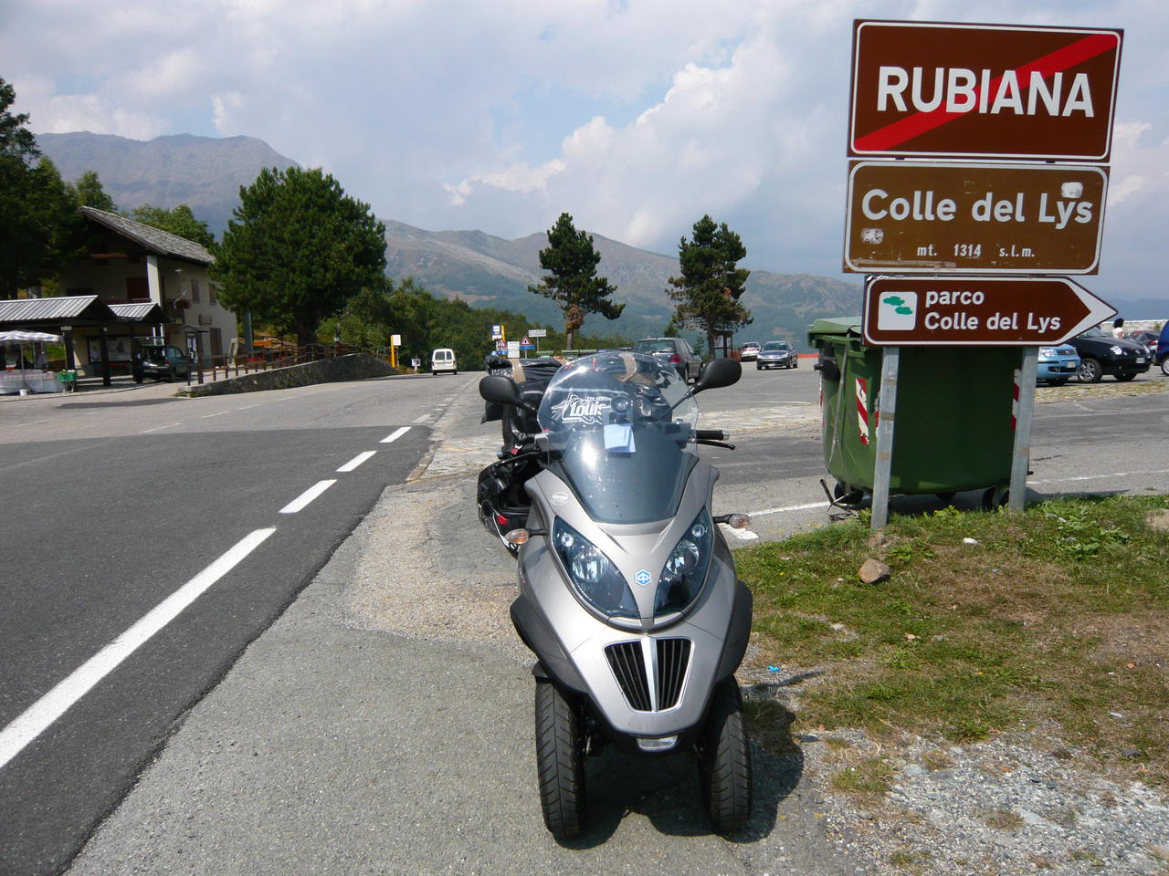 8 Uhr aufstehen 9 Uhr Abfahrt von Ceresole, ich fuhr durch das Locanatal zurück nach Cuorgne ,da machte ich erst mal Frühstück . Jetzt kam wieder ein Erlebnis der Besonderen Art. Ich saß in einer kleinen Italienischen "Bar" und machte Frühstück nebenbei merkte ich das die anderen Gäste über mich sprachen, dann traute sich einer mich anzusprechen ,und sofort war ich umringt von den anderen Gästen .Ich mußte ihnen alles erzählen über meinen MP3 und über meine Reisen. Da ich kaum Italienisch Spreche holte einer seine Tochter die Englisch sprach und übersetzen mußte. Es waren wirklich sehr nette Leute ( siehe Fotos ) . Ich ratschte ca 1,5 Stunden mit ihnen. Dann mußte ich weiter nach Busano und Mathi zum Colle del Lis ( 1314m ü M ). Vom Colle del Lis fuhr ich weiter ins Susatal wo ich mir in Bussoleno einen Campingplatz suchte.