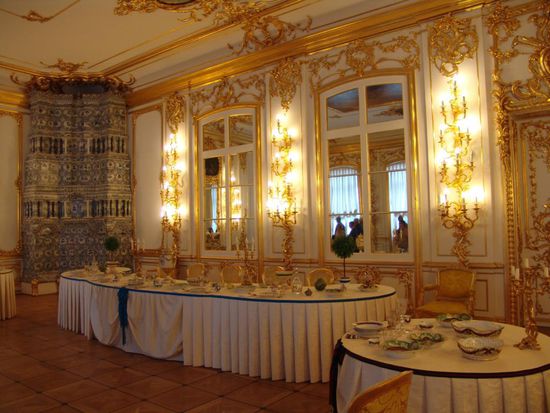 Nach 3 ganztägigen Besichtigungstouren sind wir schon etwas müde und freuen uns auf den kommenden Fahrtag, wo wir unterwegs nach Nowgorod in Puschkin den Katharinenpalast mit dem weltberühmten Bernsteinzimmer besichtigen. Das Wetter ist regnerisch, aber für die wunderbaren Zimmer im Innern des Palasts hat das Wetter keinen Einfluss. Nur für den Spaziergang im Park ist es nicht gerade einladen. In einem der Pavillons singen uns zum Trost 4 Männer ein schönes russisches Lied.