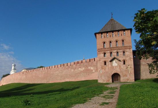 Bevor wir weiterfahren Richtung Moskau besichtigen wir den Nowgoroder Kremel, die beherrschende Festungsanlage aus dem 11. Jahrhundert. Die erhalten gebliebenen 9m hohen und 4m breiten Mauern sowie die 9 Türme, stammen aus dem 15. Jh. Sie schützen ein sorgfältig restauriertes Fleckchen altes Russland, dessen Kernstück die Sophien-Kathedrale (1045 bis 1050) darstellt. Das mittelalterliche Nowgorod war neben Konstantinopel die einzige europäische Stadt, in der das einfache Volk lesen und schreiben konnte. Die Briefe wurden auf Birkenrinde geschrieben.