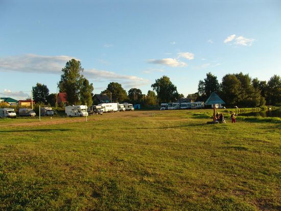Morgens um 07.00 Uhr sind wir abfahrtbereit. Die Möwen singen uns zum Abschied und wir nehmen die 210 km nach Narva zur russischen Grenze unter die Räder. Im Zollhof müssen wir bei praller Sonne über 2 Std. warten. Auch die Uhren müssen 1 Std. vorgestellt werden, was die lange Wartezeit verkürzt. Danach geht es Schritt um Schritt vorwärts mit Pass-Visa und Autokontrolle. Die Zöllner sind alle sehr freundlich, nur uns dauert die etwas ruhige Arbeitsweise etwas lang. Um 16.30 sind alle Fahrzeuge und Personen kontrolliert und wir lassen die Zollgebäude hinter uns. Bei der ersten Tankstelle wird Diesel aufgetankt, da dieser "Saft" in Russland billiger ist. Gegen Abend treffen dann alle Fahrzeuge auf dem Übernachtungsplatz "Camp Tom-Schuwalowka (ein Freilichtmuseum) ein. (GPS N 59,52,107 E 029,58,665). Wir sitzen noch etwas zusammen und geniessen ein Bier nach diesem langen Tag.