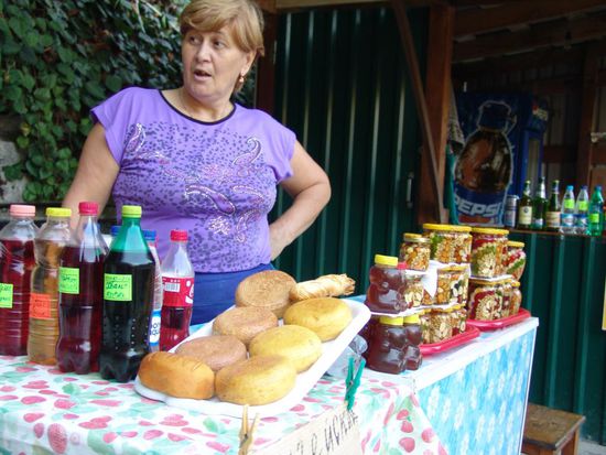 Wir lassen unsere Autos stehen und werden per Bus auf einen 300 m hohen Pass gefahren. Hier können wir eine Höhle von ca. 2 km in 58 m Tiefe besichtigen. Die Temperatur in der Höhle ist 4 C und wir können uns auf der Höhlentour etwas abkühlen. Wieder zurück bei den Autos wird uns Folklore von einem Kinderchor dargeboten. Eine wunderschöne Darbietung mit Tanz und Gesang. Anschliessend gibt es ein gemeinsames Grillfest mit Fleisch, Salat und diverse einheimischen Käsen.