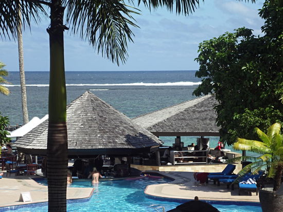 Wir wurden mit einem BULA begrüsst und durften dann noch 1 Stunde beim Zoll anstehen, bis wir anschliessend unser Gepäck entgegen nahmen. Mit dem Minibus fuhren wir bis zur unserer Unterkunft, doch da wir einige Hotels anfahren mussten, um Gäste auszuladen, dauerte die Fahrt sehr lange und wir kamen bei Regen erst um 20 Uhr in unserem Fünfsterne Hotel an. Dieses Hotel konnten wir uns mit unserem Reisebudget nur leisten, da es ein Sonderangebot war, bei welchem wir 3 Nächte bezahlten aber 7 Nächte bleiben konnten, ein Angebot bei welchem man nicht Nein sagen kann.