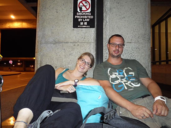 Nach einem zwischen Stopp in Samoa, wo alle Passagiere aussteigen mussten und wir nochmals durch die Gepäck- und Personenkontrolle durften ging der Flug mit dem gleichen Flieger nach Honolulu. In Fidschi sind wir am 13.6. um 14:55 Abgeflogen und landeten am 13.6. um 00:15 in Hawaii. Zeitzone sei Dank und wir erlebten den Freitag den 13. gleich zweimal. Da unser Weiterflug nach Hilo, Big Island erst um 06:15 startete verbrachten wir die Nacht mit anderen Gestrandeten am Flughafen.