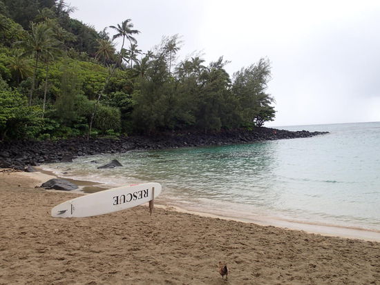 Nach zwei kurzen Flügen, da wir umsteigen mussten in Honolulu, kamen wir in Kauai an. Nachdem wir unser Condo in Princeville bezogen hatten, verbrachten wir den Nachmittag bei Sonne und Regen am Ke'e Beach.
