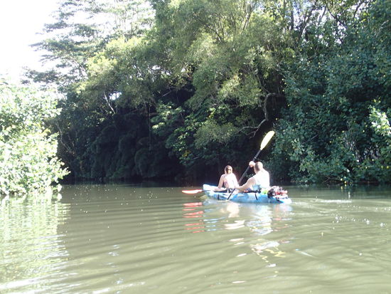 Um die angestauten Aggressionen abbauen zu können haben wir dann Kanus gemietet und sind einen ruhigen Fluss hinauf gepaddelt.