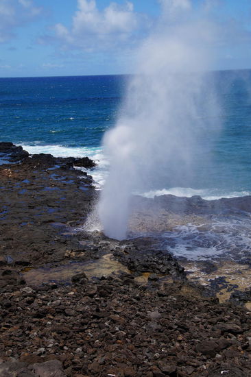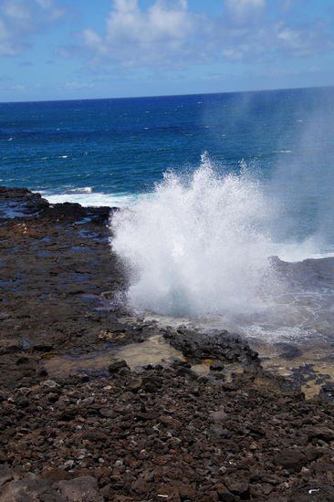 Später besuchten wir den Spouting Horn Park, wo das Meerwasser durch ein unterirdisches Tunnel bis zu 15m in die Höhe schiessen kann.