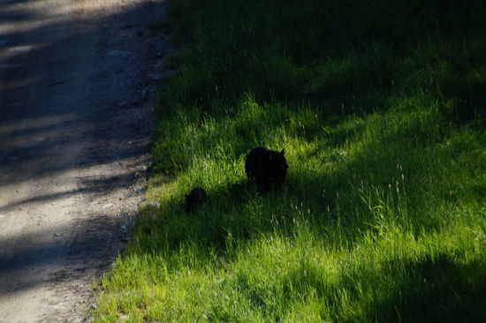 Unterhalb der Mittelstation folgte Bär Nummer drei und einen Vierten sahen wir auch noch auf dem Weg nach Oben. Wir waren also wirklich im Bärengebiet angekommen. Nun erklärt es sich auch, dass man seinen Abfall nirgends herumliegen lassen darf und alles in bärensichere Container kommt. Nur so halten die Bären von den Dörfern abstand und es lässt sich gut miteinander leben.