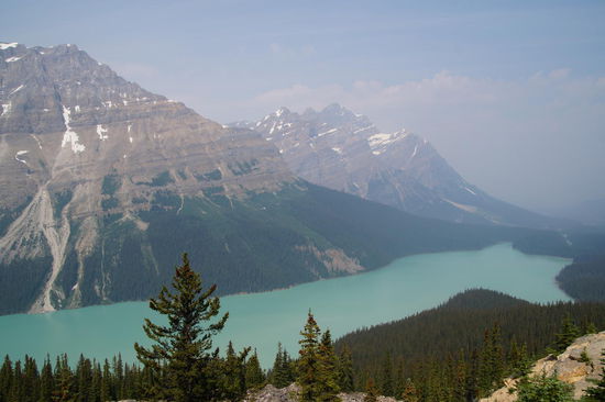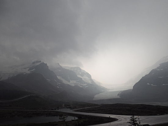 Icefields Parkway wird die Strasse zwischen Jasper und Banff genannt. Sie führt über Pässe an unzähligen Seen und schönen Bergketten vorbei. Es war leider sehr bewölkt und es regnete immer wieder somit war vom Bergpanorama nicht viel zusehen. Wir machten noch halt im Columbia Icefield Center von wo man drei Gletscher sehen kann. Zum Athabasca Gletscher konnte eine Tour gebucht werden um auf dem Eis zulaufen, da es stark regnete beliessen wir es dabei, Ihn aus der Ferne zu bestaunen. Unsere Fahrt ging mit weiteren kurzen Stopps bis nach Banff.