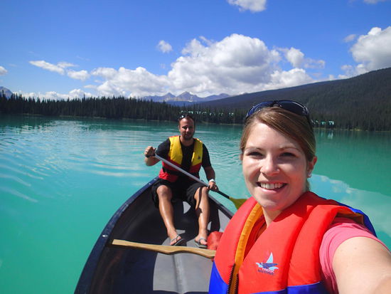 Im Yoho NP besuchten wir die Takakka Falls und den Emerald Lake. Auf dem See mieteten wir ein Kanu und genossen es uns auf dem Wasser treiben zulassen.