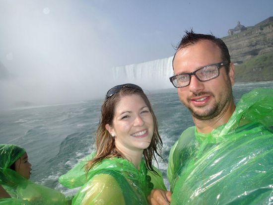 Am morgenfrüh bei schönem Wetter machten wir eine Bootsfahrt zu den Niagara Falls, wir wurden dabei trotz Pellerine nass, es machte aber riesen spass so nahe an die Wasserfälle zu fahren.