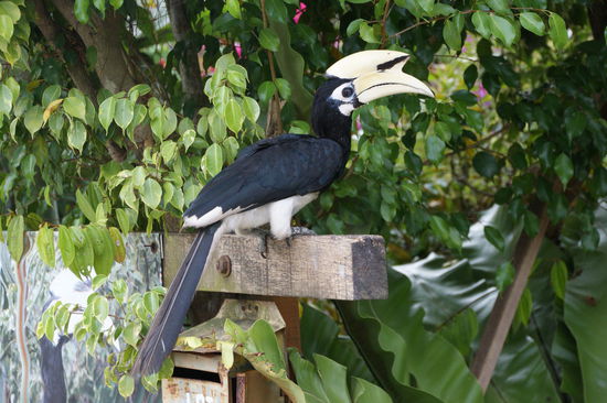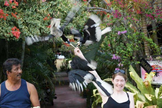 Um 18:30 Uhr fand um die Ecke unseres Hotels die Hornbill-Fütterung statt, wo Lea tatkräftig mithalf