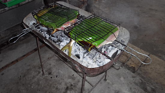 Das Abendessen das es heute gab, war das beste überhaupt, wir konnten von auf Eis gelegten Fischen auslesen. Dieser wurde dann in ein Bananenblatt verpackt und grilliert. Es kostete nichts und war absolut der Hammer.
